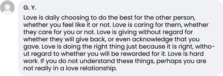 Comments about love on our Facebook posts